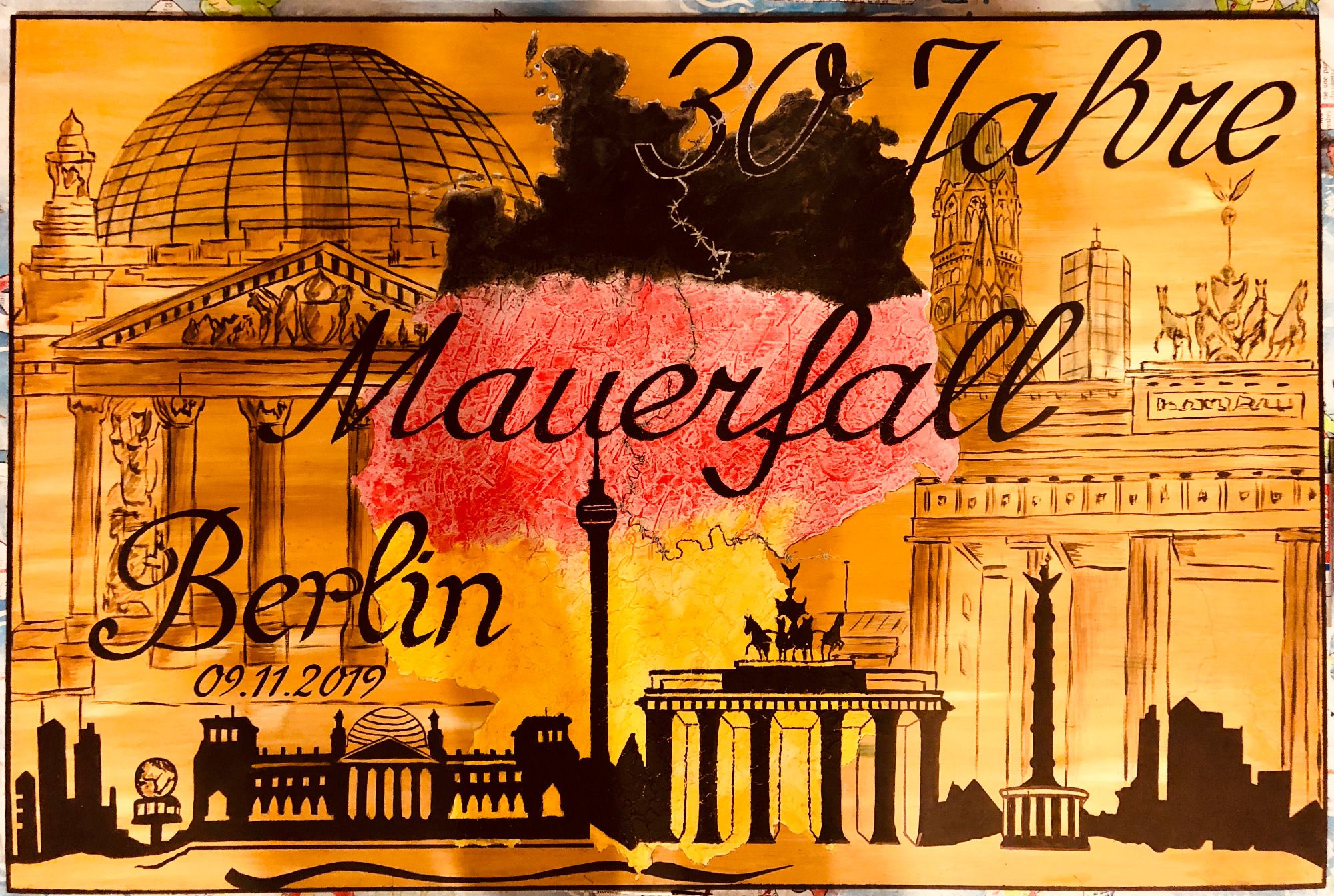 Wir hatten ein interessantes Gespräch und übergaben 3 weitere Kunstwerke. Eine Collage anlässlich des Mauerfalls vor 30 Jahren. Außerdem ein Portait von Frau Dr. Angela Merkel und Herrn Konrad Adenauer.